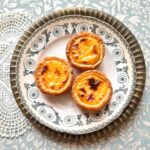 Vaniljekreemiga lahtine saiake, millele on lisatud kas rabarbereid või sõstraid.