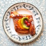 Kihitatud pärmitaignast kreemi ja puuviljadega saiake