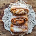 Võist ja suhkrust valmistatud täidisega saiake.