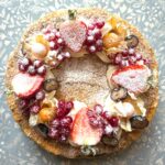 Mandlitäidisega ja punaste sõstardega kringel, pealt kaetud võikreemiga.Kõige parem. Valmistame erinevates suurustes: 0,6 kg; 1,2 kg; 1,8 kg; 2,4 kg; 3,0 kg . Sisaldab nisujahu,piima, muna , mandleid